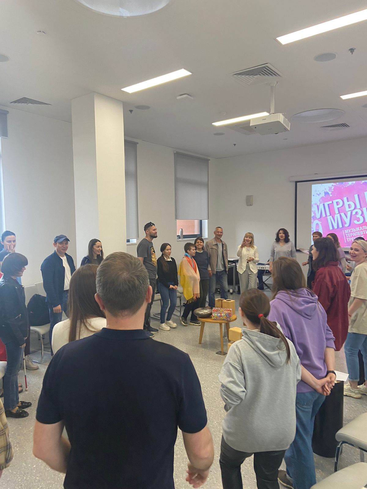 Замечательные специалисты нашего города стали гостями мероприятия, посвященного выходу в свет небольшого, но, надеемся, полезного издания «Музыкальный коррекционно-оздоровительный тренинг с элементами импровизации». Много добрых слов прозвучало от коллег и руководителей тех учреждений, где наша маленькая группа музыкантов (Татьяна Гордеева, Илья Бажин, Дмитрий Гордеев) за последние 8 лет провели музыкально-терапевтические тренинги, мастер-классы, лекции и семинары.